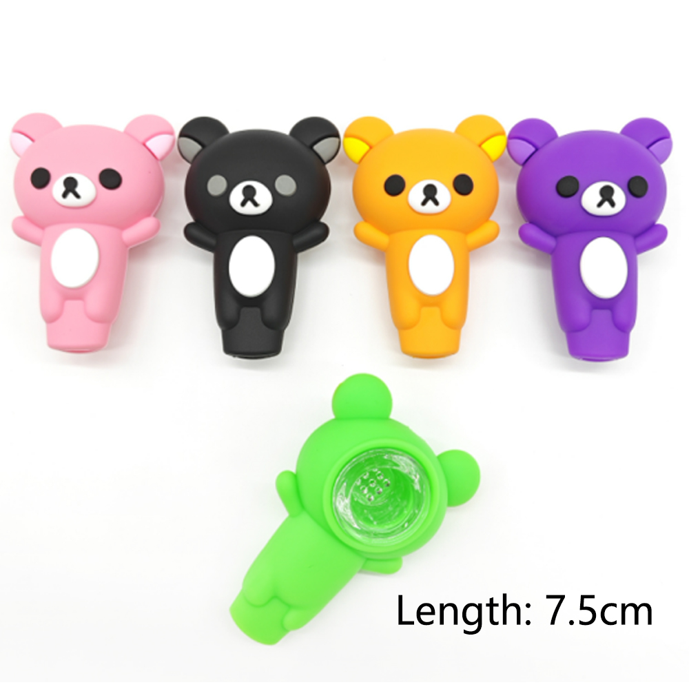 A2095 Bear Silicone Pipe With Glass Bowl